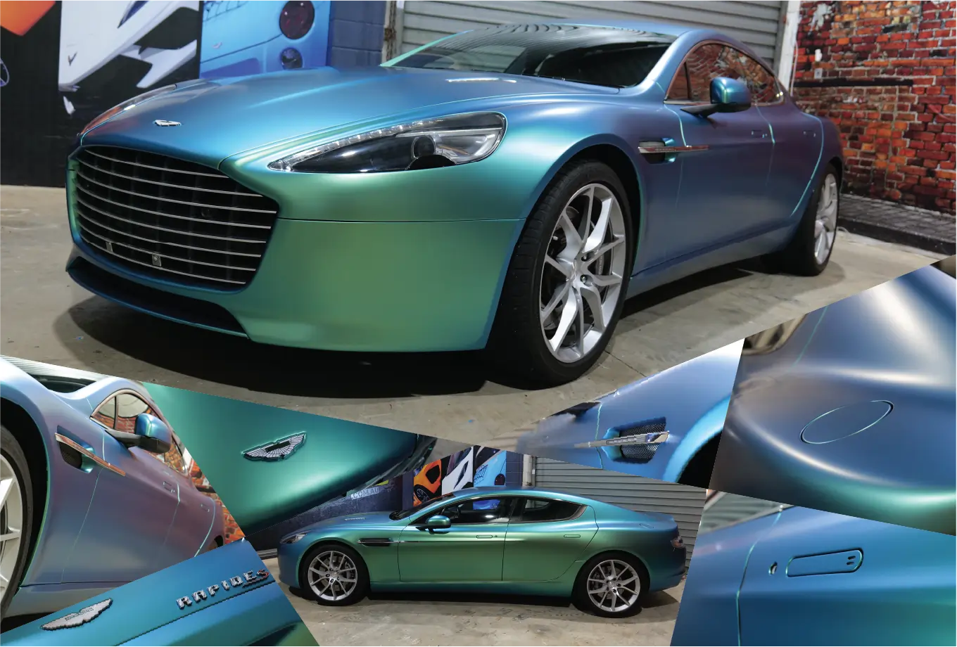 The majestic Aston Martin Rapide unleashes the adrenaline rush of the 5.9L V12 monster engine, a masterpiece wrapped in matte metallic flip green.